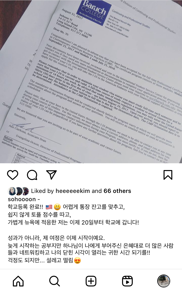 그나저나 내가 뉴욕생활을 시작하게 했던 프로그램: Baruch College CAPS(Continuing & Professional Studies)