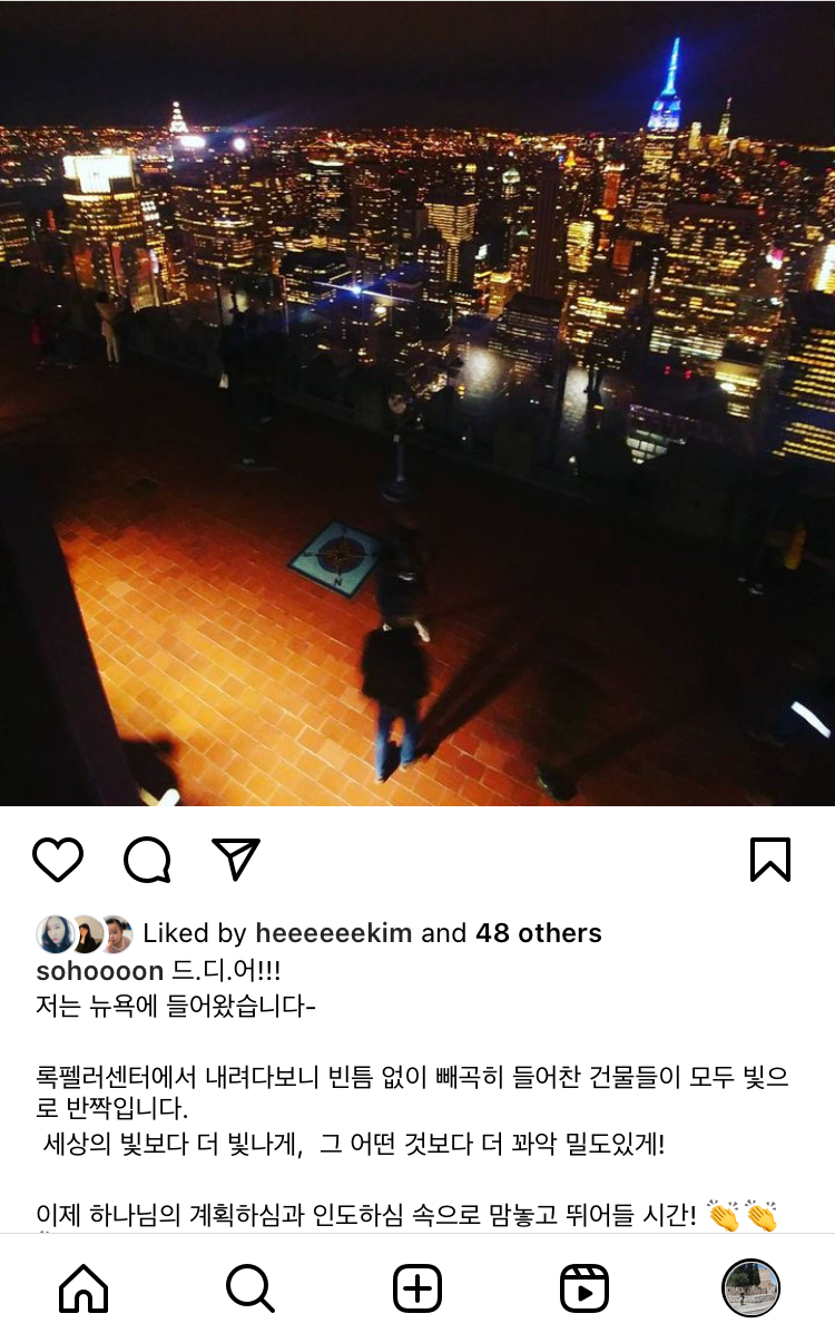 송구영신 예배에서 도대체 무슨 일이 있었길래 필리핀에서 뉴욕으로 목적지가 일순간에 바뀔 수가 있는건지? 나도 이해되지 않는 일들이 삶에서는 종종 일어난다. 좋은 쪽으로든 예상하지 못한 쪽으로든 그럴 때가 있다. 세상에서는 ‘우연’ 혹은 ‘운’ 이라고 얘기하고 하나님을 믿는 나는 ‘인도하심’ 이라고 믿는다.